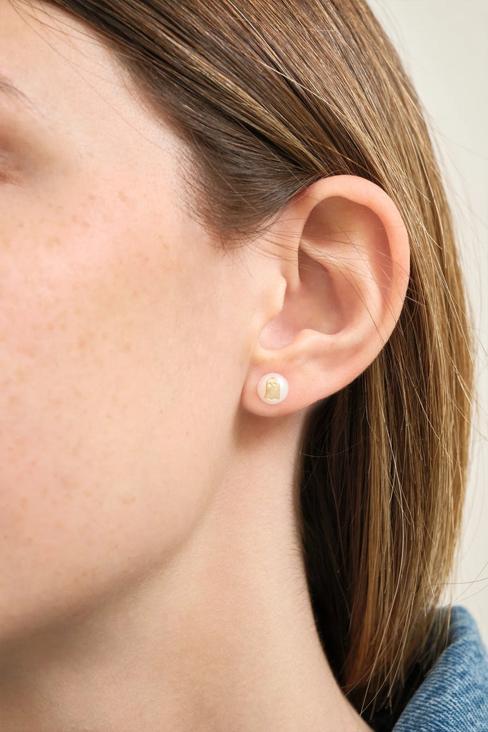 ミニボールドファンタズマペルライヤリングは、滑らかな白い淡水パールが特徴で、それぞれのパールの中に小さな幽霊がイエローゴールドの中に隠されています。まるで波間に見つけた秘密の友達のよう。少し神秘的で、少し魔法のようなこのイヤリングは、貝殻一つ一つに物語があり、太陽が沈むことのない、海辺で過ごした長い午後を思い出させます。夢見る人、ビーチを愛する人、そして小さな宝物を集める人のために作られました。