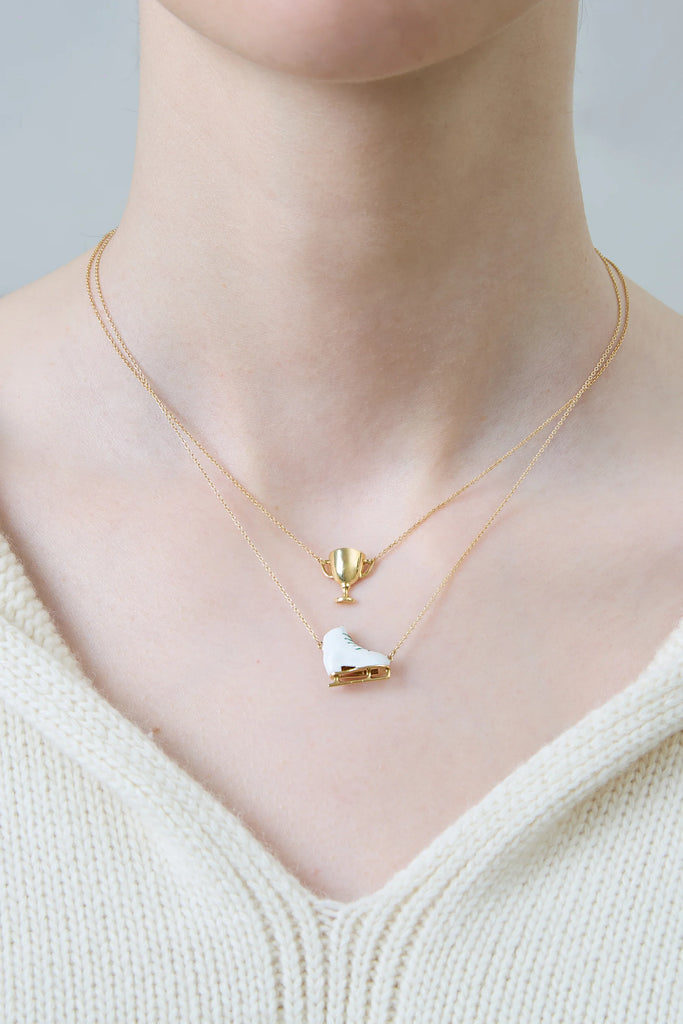 スポーツへの情熱を、ミニチュアの勝利のカップを模した輝くイエローゴールドのトロフィーネックレスで表現しましょう。モダンで個性的なこのネックレスは、限界に挑戦するスリルと、その過程で得られるあらゆる達成感を称えます。自信と遊び心のある勝利感を、あなたの日常スタイルに添える、特別なアイテムです。