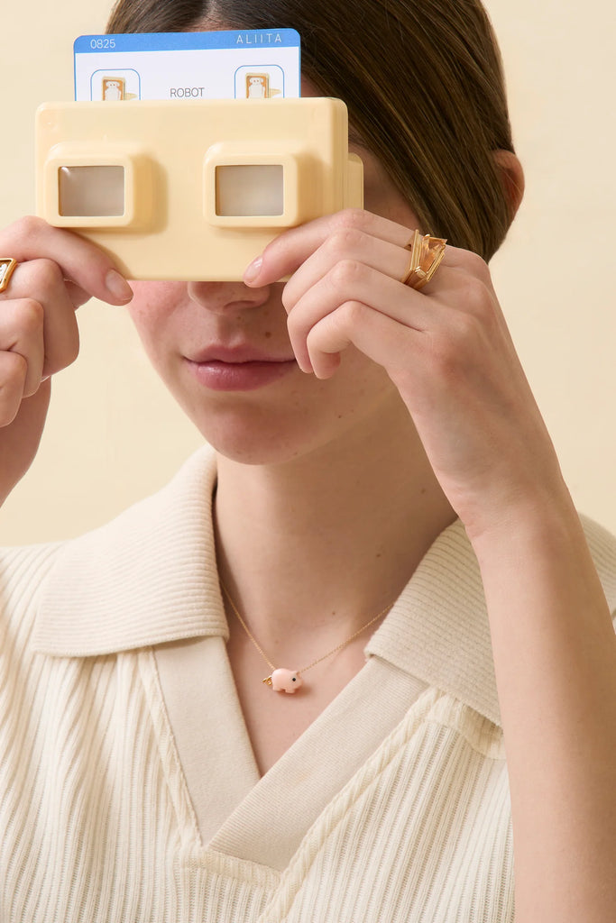 愛らしいブタの形をしたピンクオパール製のペンダントが付いた、キュートなピギーネックレス。チャーミングなゴールドの尻尾が、遊び心を添えています。このネックレスは、農場生活の素朴で楽しい雰囲気と、動物たちが笑いと愛情で満ち溢れていた幼い頃の懐かしい思い出を彷彿とさせます。あなたのコレクションに、きっと心温まる素敵なアクセントを加えてくれるでしょう。