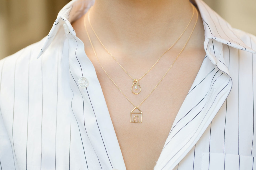 CASITA BRILLANTEネックレス(家)の繊細なラインは、あなたのスタイルにエレガンスと調和をもたらし、ダイヤモンドの輝きが毎日を明るく照らします。何よりも硬く、永遠の絆や変わらぬ愛を象徴すると言われるダイヤモンドは、あなたの家や家族を強い絆で守ることでしょう。